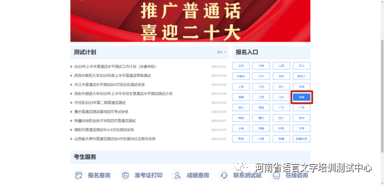 2.报名。考生注册登录成功后,在首页报名入口一栏选择省份“河南”。进入“选择考点”页面后,选择“许昌市普通话水平测试站”,根据自身安排选择测试时间。